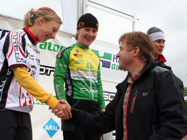 Letošní zajímavý sportovní podnik na letišti u Vrchlabí – závody v jízdě na horských kolech. Rád a s chutí předávám odměny těm nejlepším sportovcům.