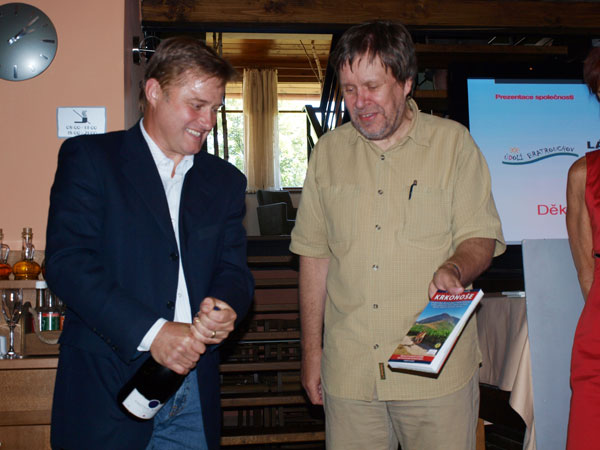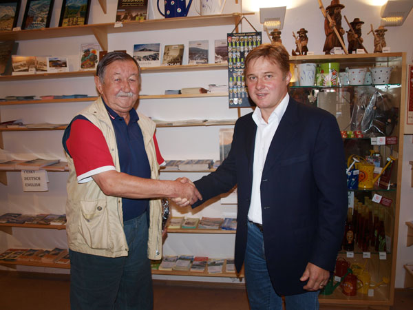 Starosta Jan Sobotka, ředitelka Regionálního turistického informačního centra Klára Kroupová, s kolektivem pracovníků, ve středu 11. srpna 2010 přivítali 60.000 návštěvníka RTIC pana Oldřicha Bartoníčka z Vrchlabí.