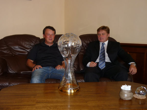 Jan Sobotka přivítal na půdě vrchlabské radnice trenéra Ladislava Novotného, krkonošského rodáka, někdejšího sjezdaře a současně úspěšného trenéra travního lyžování. Důvod k publicitě a gratulacím je jednoznačný: čeští lyžaři „v jízdě na trávě“ jsou letos nejlepší na světě. Křišťálový globus totiž znamená pro každého lyžaře vysněný grál. Češi získali letos všechny. Velkou trofej získali trenéři Ladislav Novotný a Daniel Mačát pro celé družstvo.