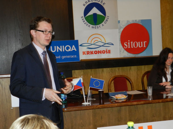 „Máme zájem spolupracovat s nejvyššími patry a hovořit do tvorby zásadních rozvojových materiálů, uvedl Jan Sobotka. Proto vzniká zadání pro analýzu rozvojových možností širšího regionu Krkonoš a následně i Krkonošský integrovaný plán rozvoje (KIPR), zacílený na region národního parku a jeho ochranného pásma. Hledáme způsoby, jak propojit rozdílné zájmy jednotlivých měst a obcí. Nechceme jenom tvořit analýzy obecně platných teoretických výstupů a závěrů,“ otevřel téma Jan Sobotka.